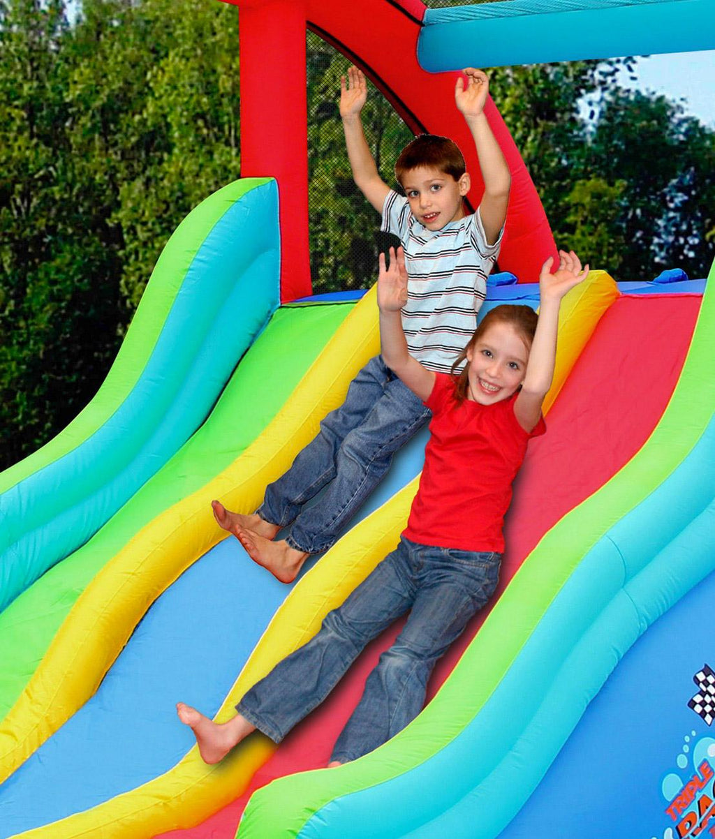 Castello Giostra Gonfiabile Acquatico Triple Racing Thunder con Pompa Happy Hop
