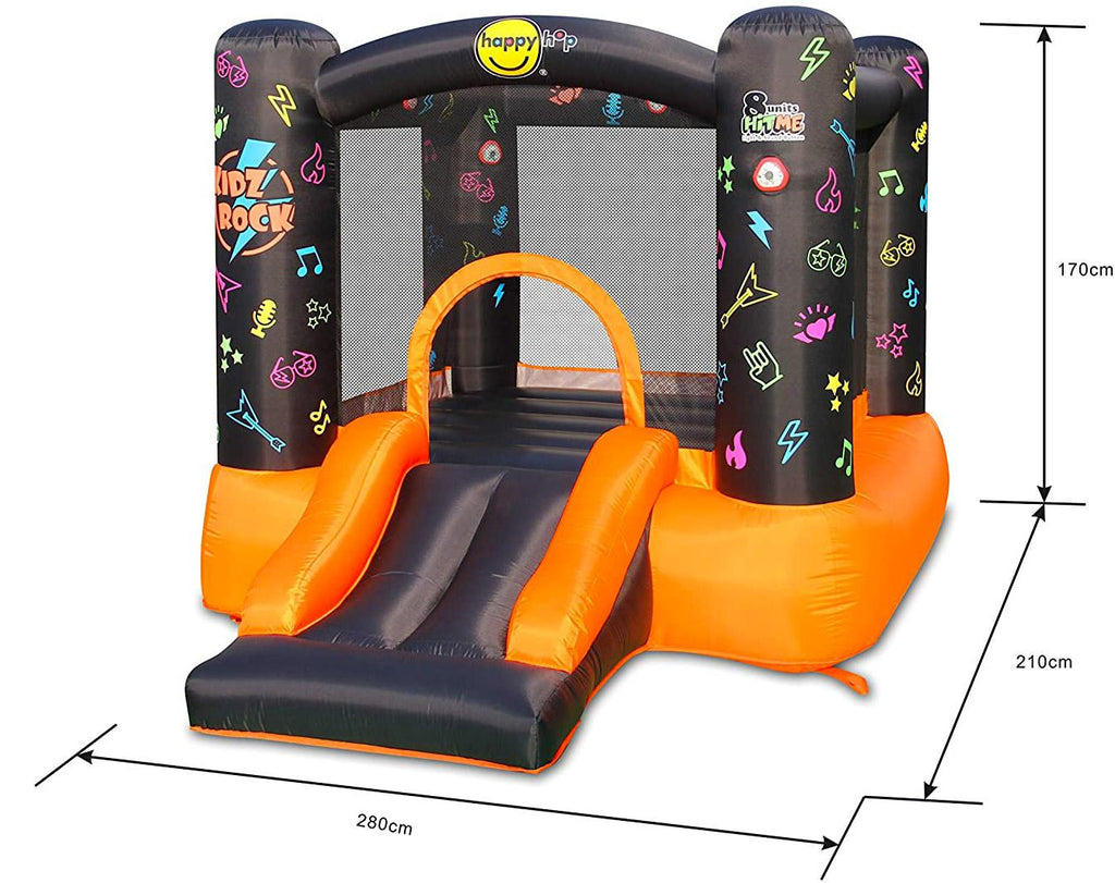 Kidz Rock terzo modello di mini gonfiabili della linea interattiva HITME di Happy HOP, dotato di salterello e scivolo a tema rock music per far scatenare i bambini che amano sia la musica che muoversi schiacciando i vari pulsanti che cambiano colore continuamente. Dotato di 8 pulsanti che si possono inserire negli appositi spazi distribuiti sul gonfiabile.