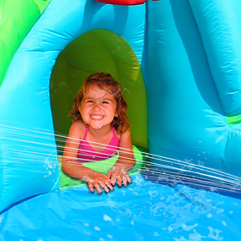 Mr. Coccodrillo, il primo rettile che non piange, ma sorride E dal suo sorriso a 13 denti scorrono bambini con un ghigno altrettanto compiaciuto! Sintesi perfetta tra i due veterani Parco acquatico e Acquafun, questo castello offre in più la suggestione dellambientazione e dei suoi colori. SI PU GIOCARE ANCHE SENZ'ACQUA! ADATTO ANCHE IN INVERNO!