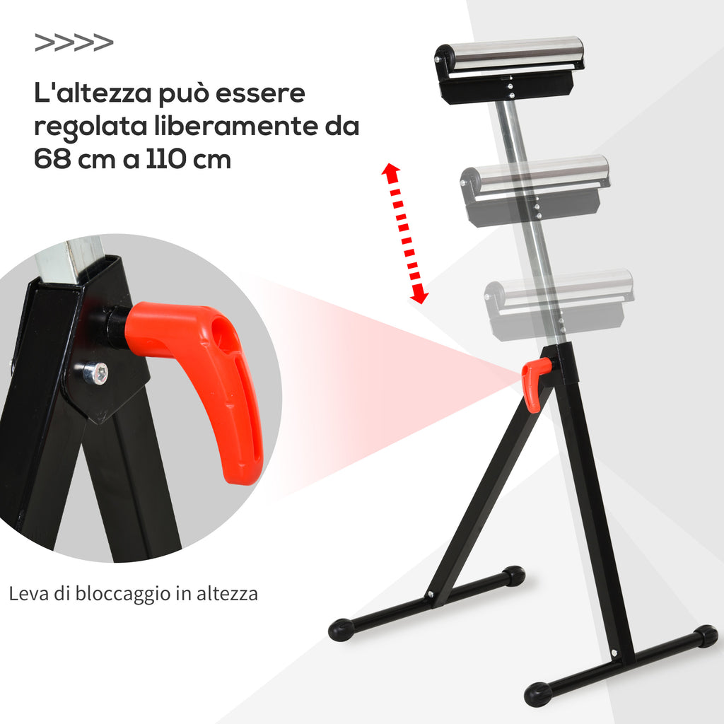 Cavalletto a Rullo 44x50x68-110 cm Altezza Regolabile in Metallo Nero
