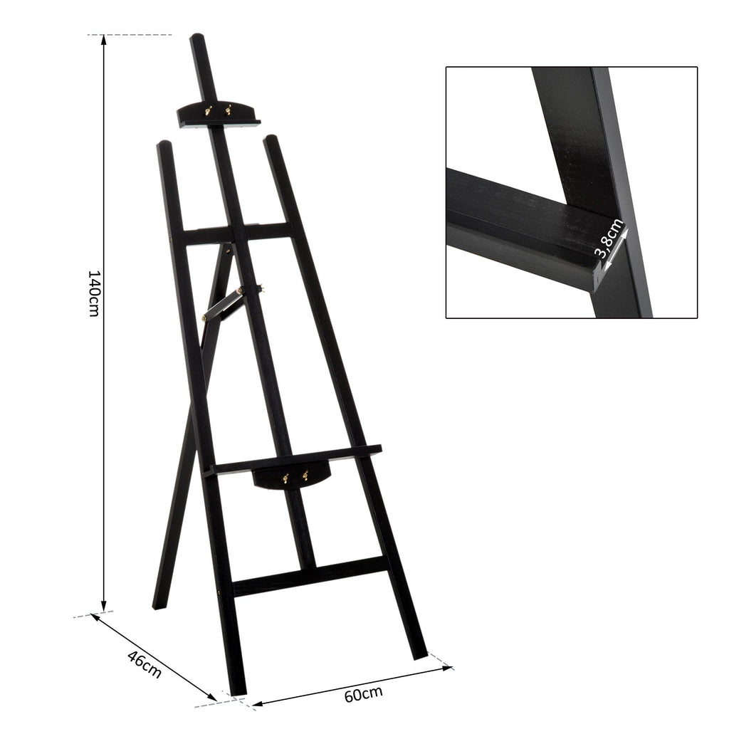 Cavalletto per Pittura in Legno con Altezza e Inclinazione Regolabili Nero 46x60x140 cm