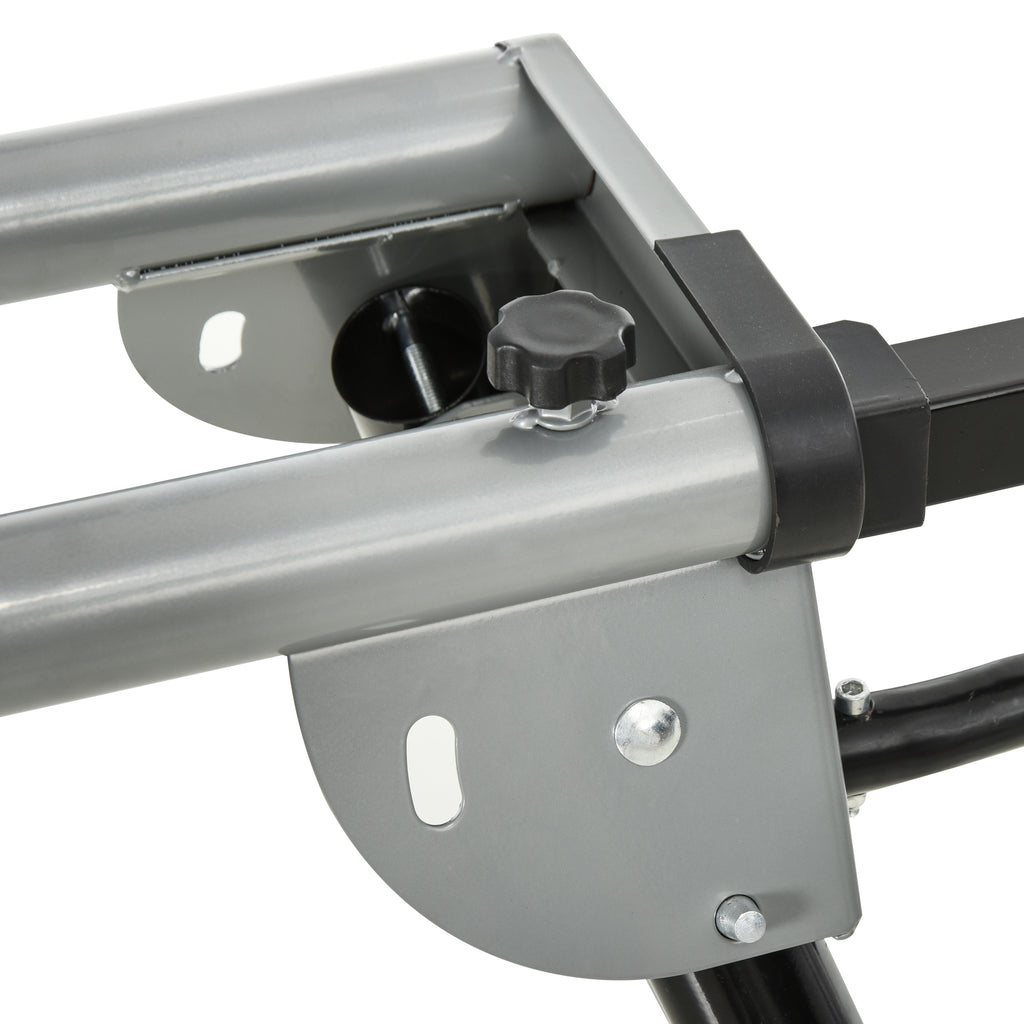 Grazie al supporto per sega a troncatrice potrai eseguire i tuoi lavori in modo professionale e sicuro. Il cavalletto è telescopico, pieghevole e dotato di ruote per spostarlo con facilità. Costruito in metallo robusto, garantisce un supporto completo durante l'uso. L'altezza del braccio è regolabile con un morsetto a sgancio rapido, per un'impostazione rapida e semplice. Grazie al suo design universale, puoi usare questo cavalletto da lavoro con la maggior parte delle seghe troncatrici.