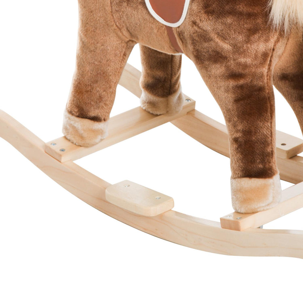 Cavallo a Dondolo Cavalcabile in Peluche e Legno Marrone