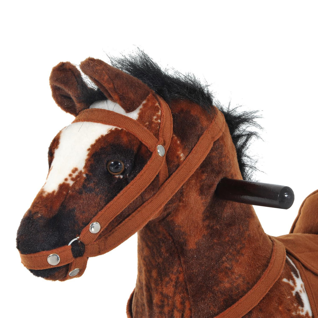 Cavallo a Dondolo con Suoni in Peluche e Legno di Pioppo Marrone Scuro