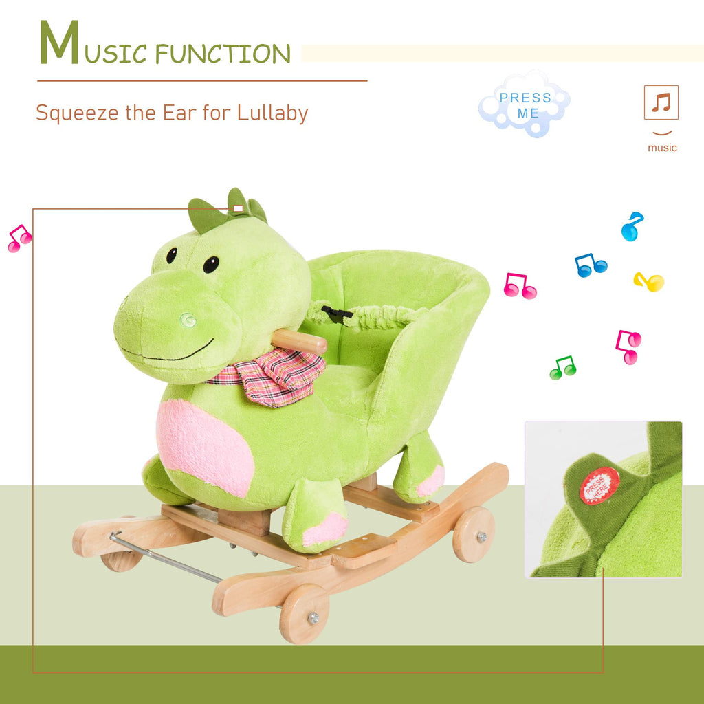 Cavallo a Dondolo per Bambini in Legno e Peluche Drago Verde