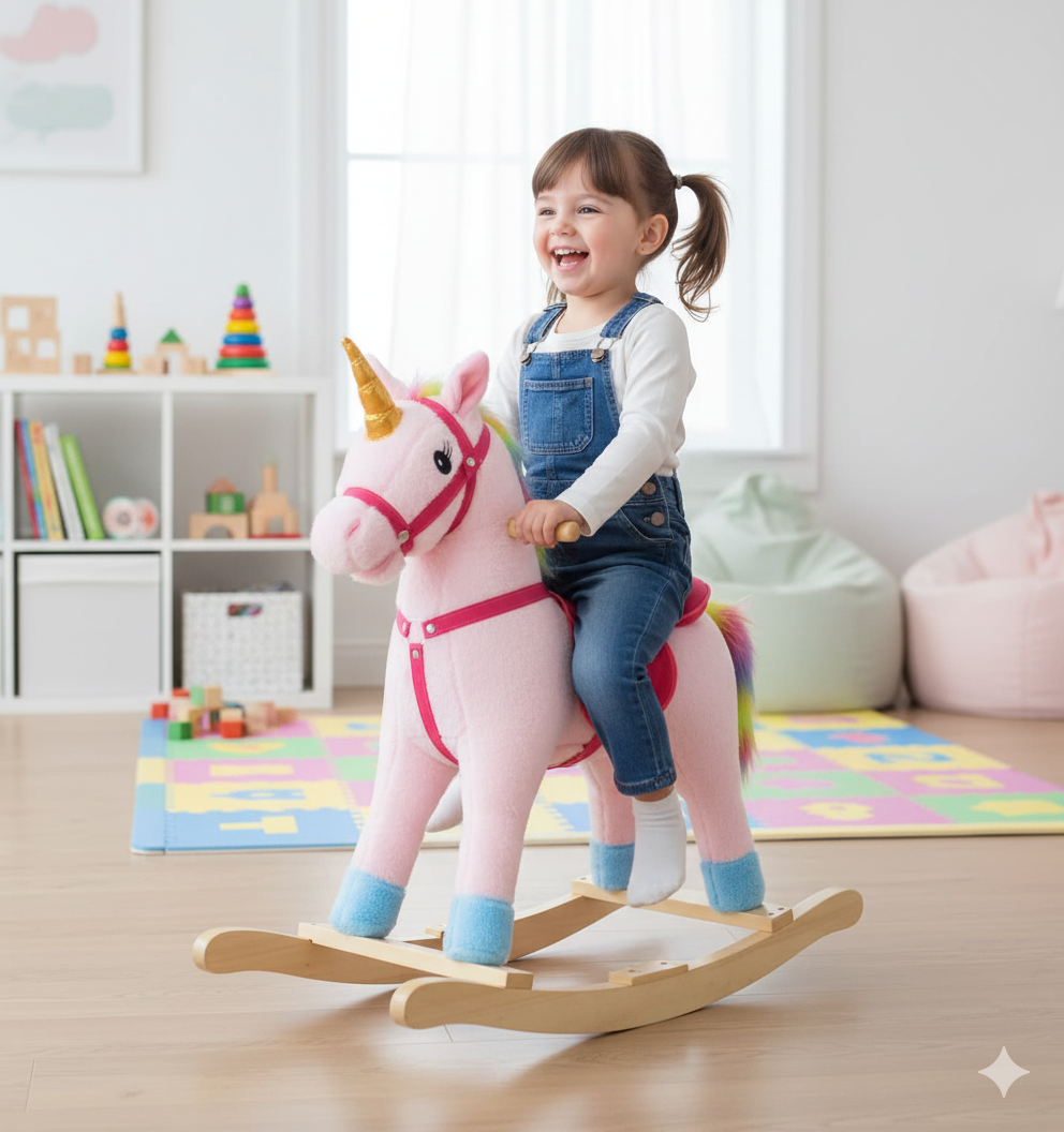 - Cavallo a dondolo in Peluche a forma di Unicorno