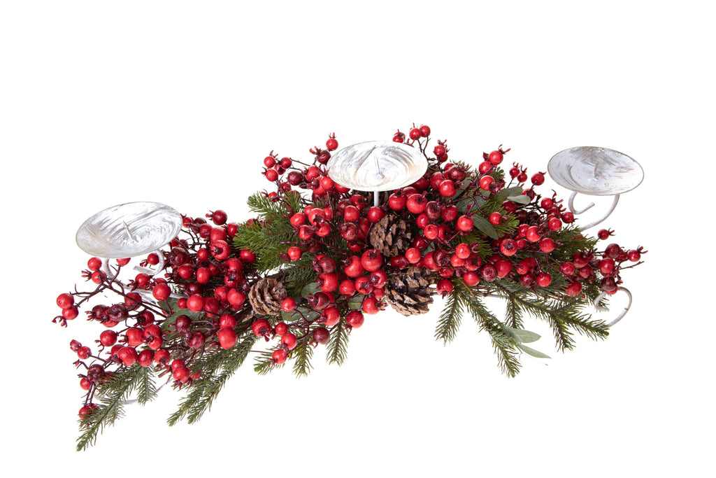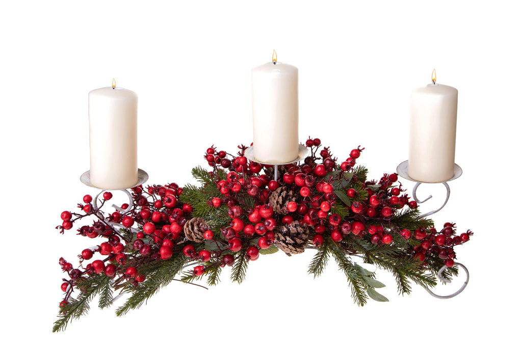Centrotavola Natalizio 73 cm per 3 Candele con Wild Rose