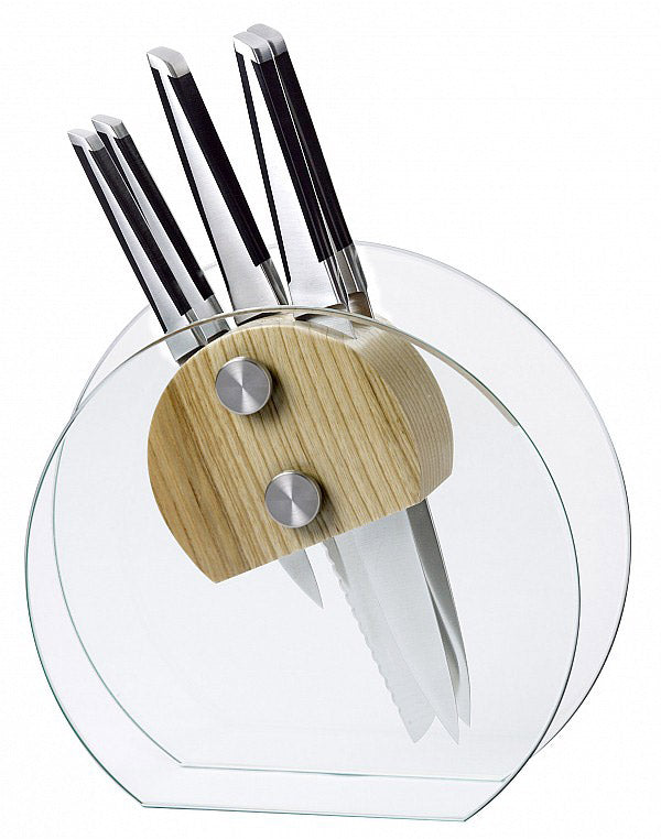Il Ceppo Coltelli Design Alexander Crystal è un Ceppo Coltelli Professionali scelto da Chef e amanti della cucina raffinata: incontro di design e praticità, la tradizione del massello di rovere e la modernità del vetro temprato.