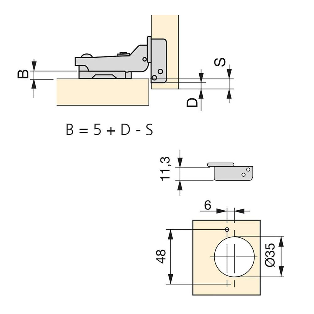 Cerniera A Scodellino 35 mm Mezzo Collo 100° Con Basetta 20 Pezzi Emuca