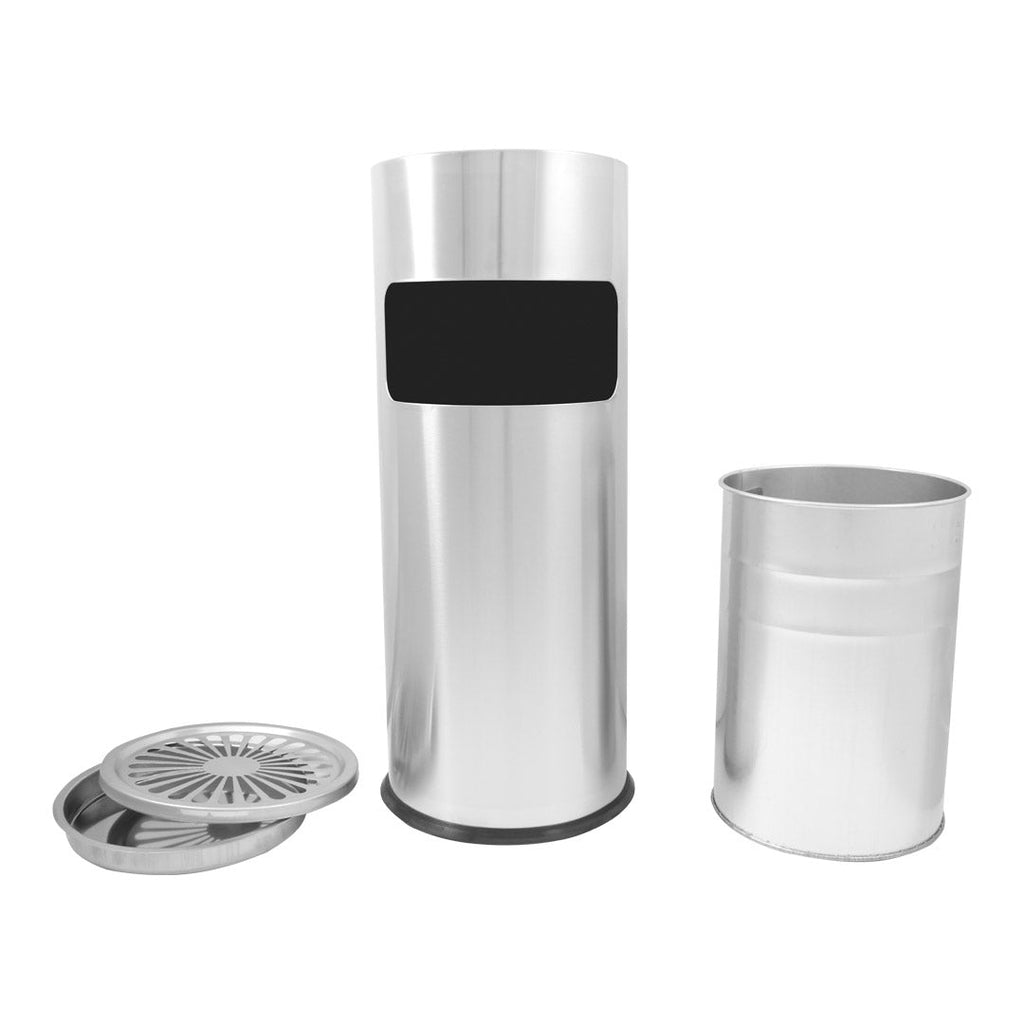 - Cestino gettacarte rotondo con posacenere in acciaio
