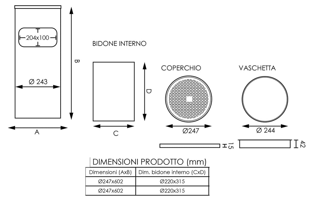 - Dimensioni Bidone Interno (ØxA): 22x31,5 cm