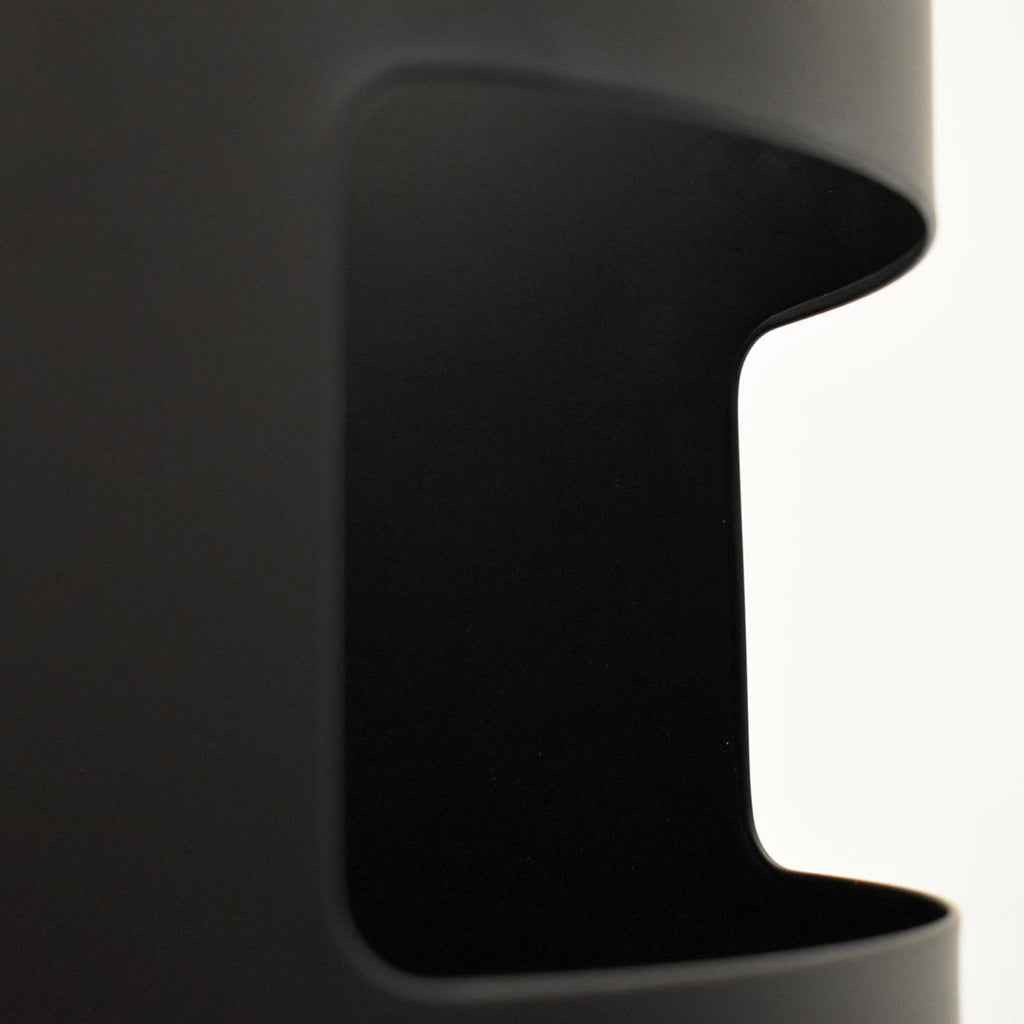 Cestino gettacarte con posacenere rotondo in metallo verniciato a polveri nero opaco dotato di Ampio foro getta carte frontale. Il Bidone interno rimovibile facilita lo svuotamento dei rifiuti ed è dotato di maniglia.