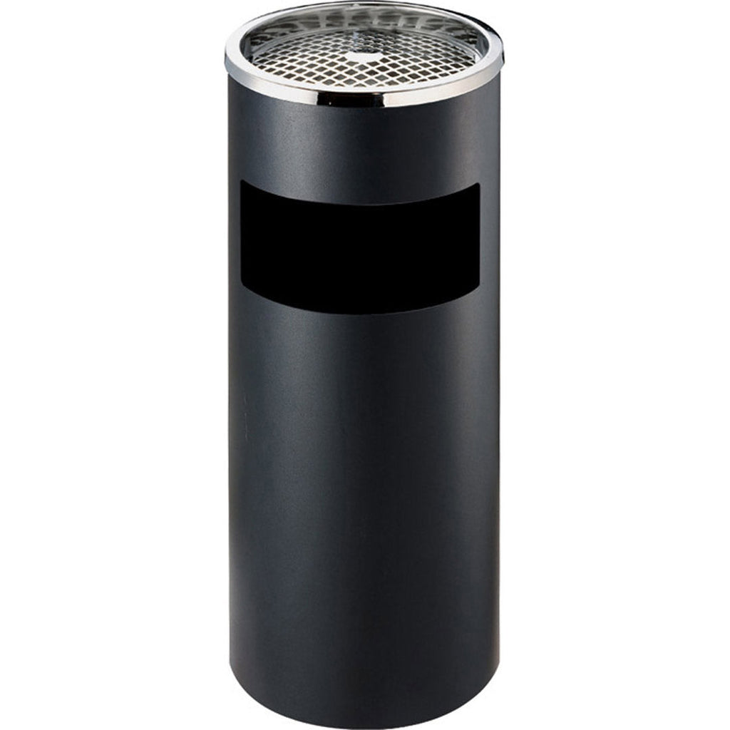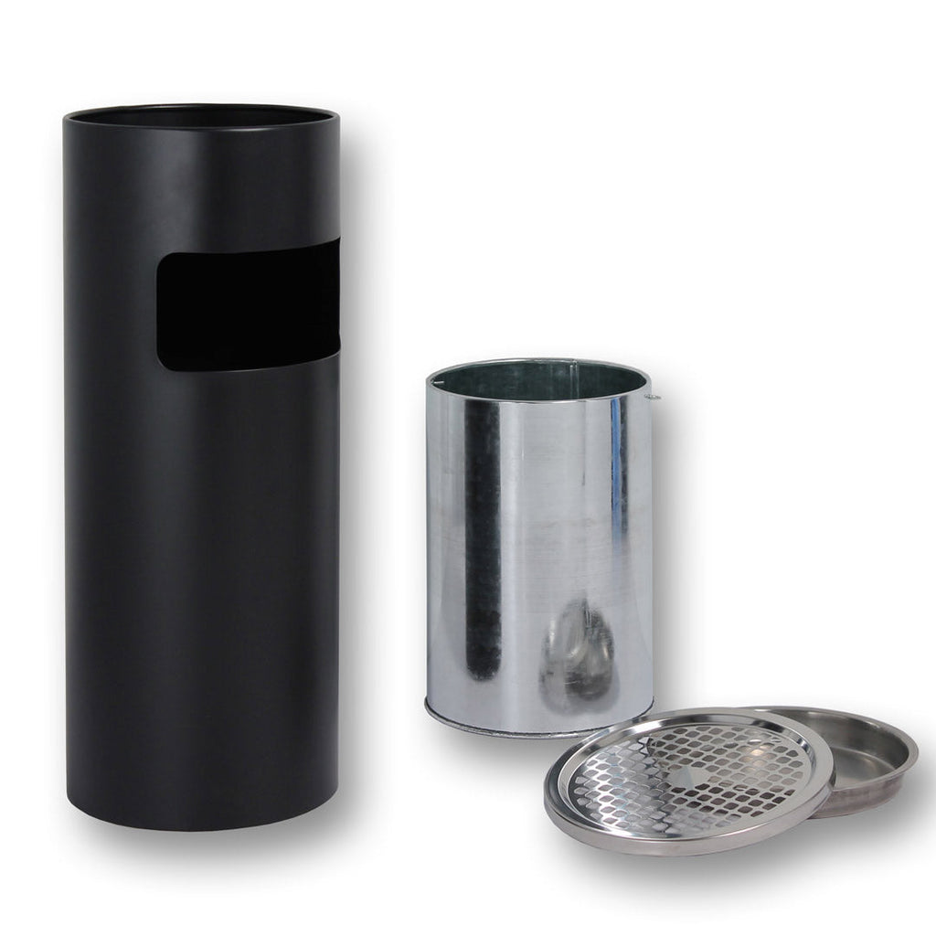 - Cestino gettacarte rotondo con posacenere in metallo verniciato a polveri nero opaco