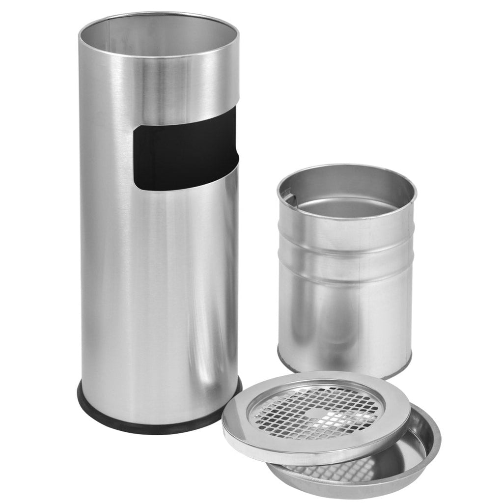 - Cestino gettacarte rotondo con posacenere in acciaio