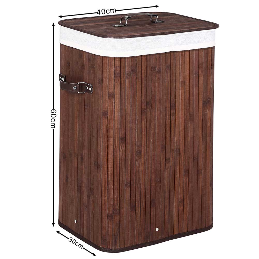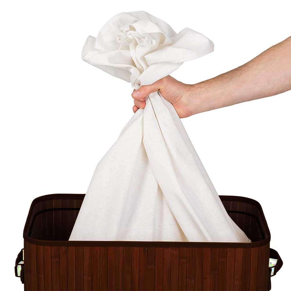 Questo bellissimo cesto portabiancheria è realizzato interamente in legno di Bambù materiale molto resistente e duraturo, all'interno è rivestito con un sacco in tessuto, che non assorbe gli odori sgradevoli della biancheria sporca inoltre può essere rimosso dalla struttura in bambù per essere lavato molto facilmente.