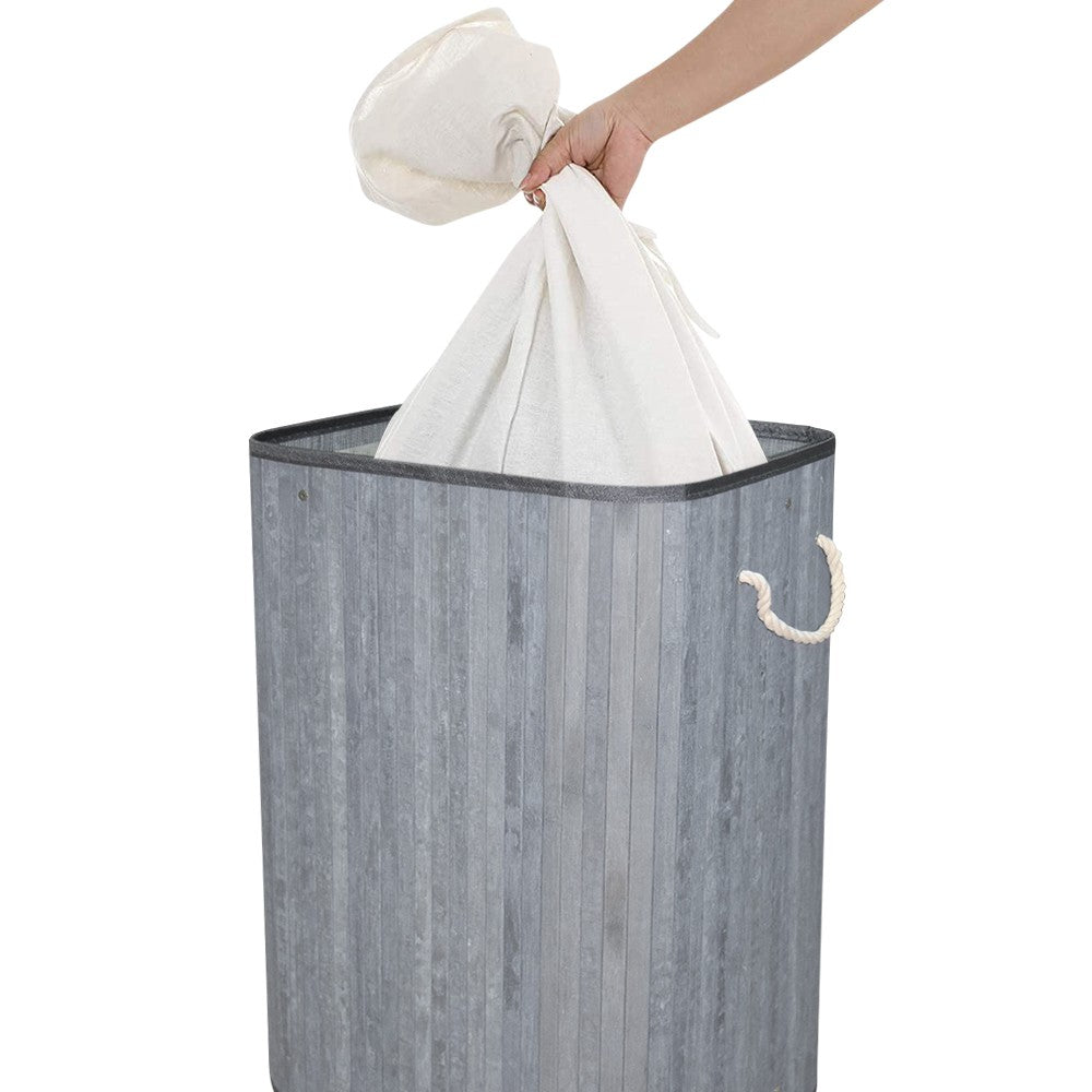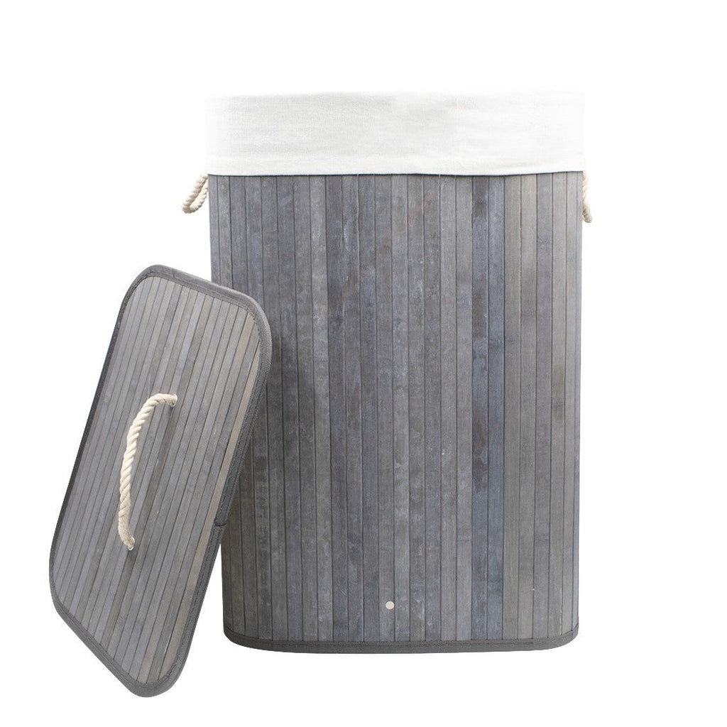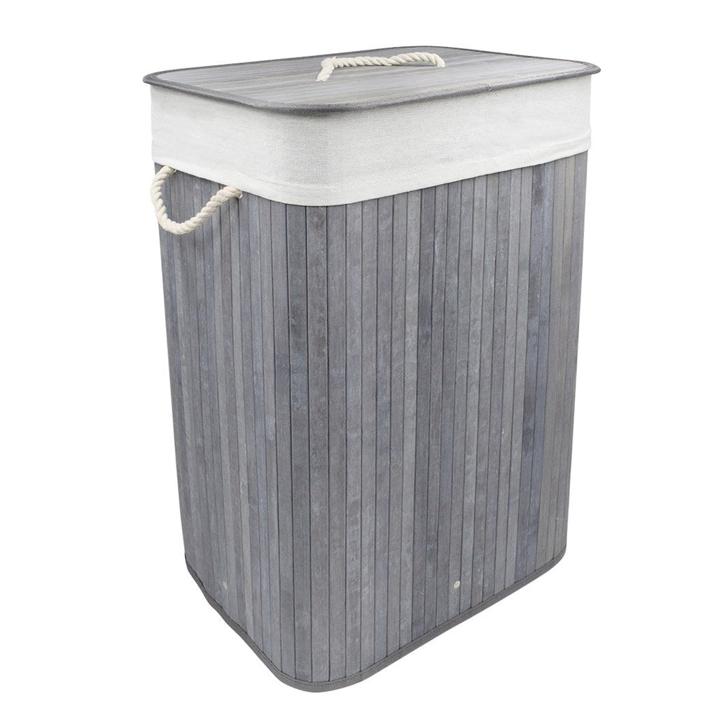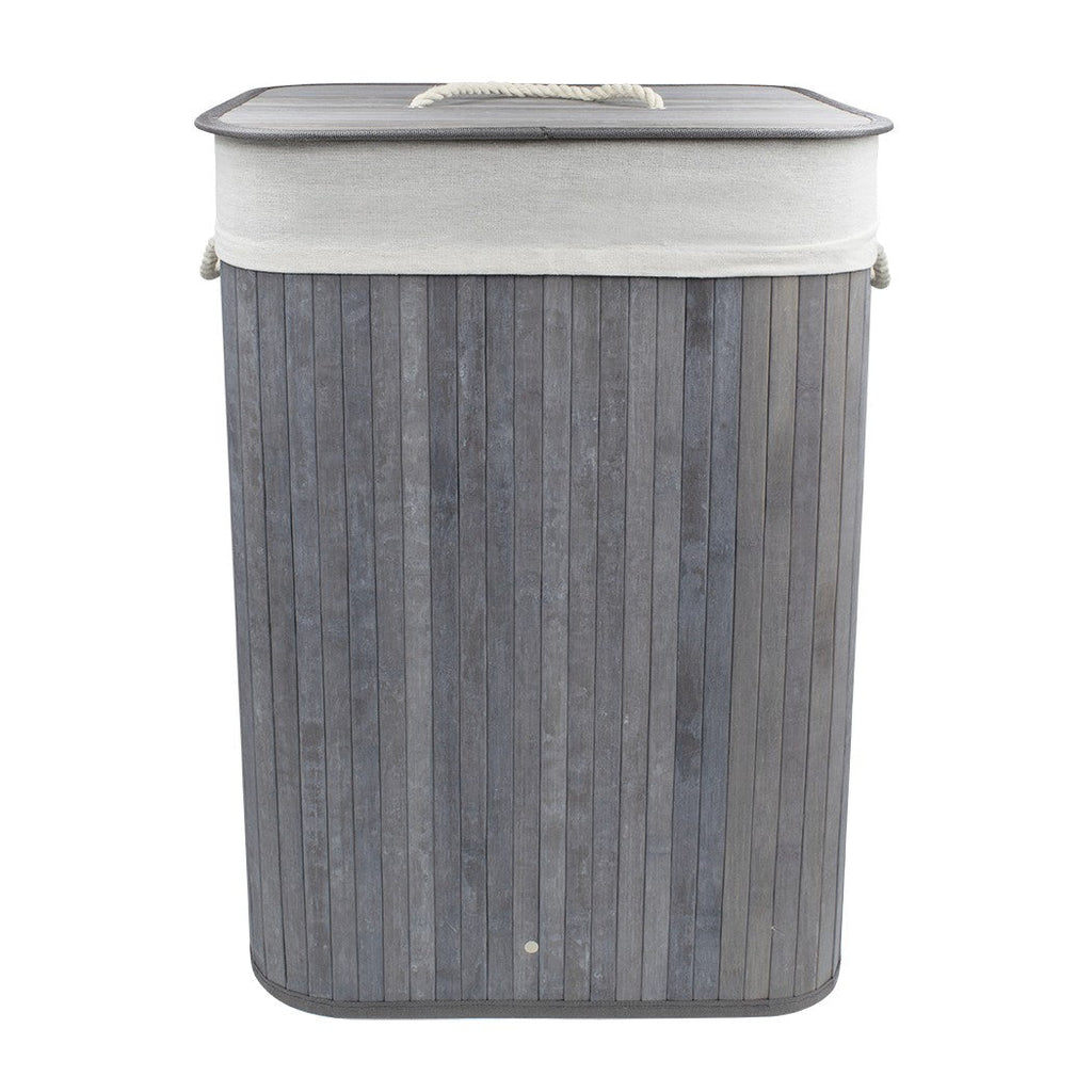 Cesto Portabiancheria 60x40x27 con Maniche e Coperchio in Bambù Grigio