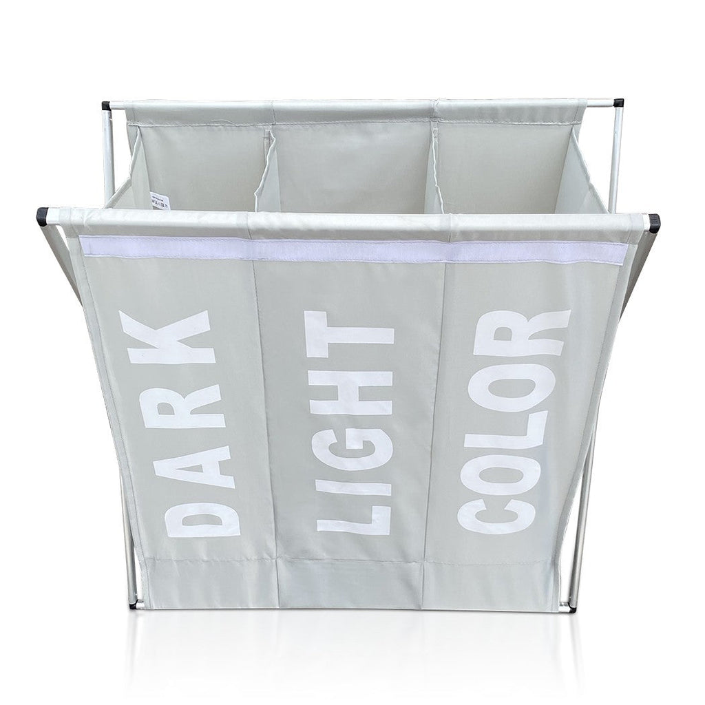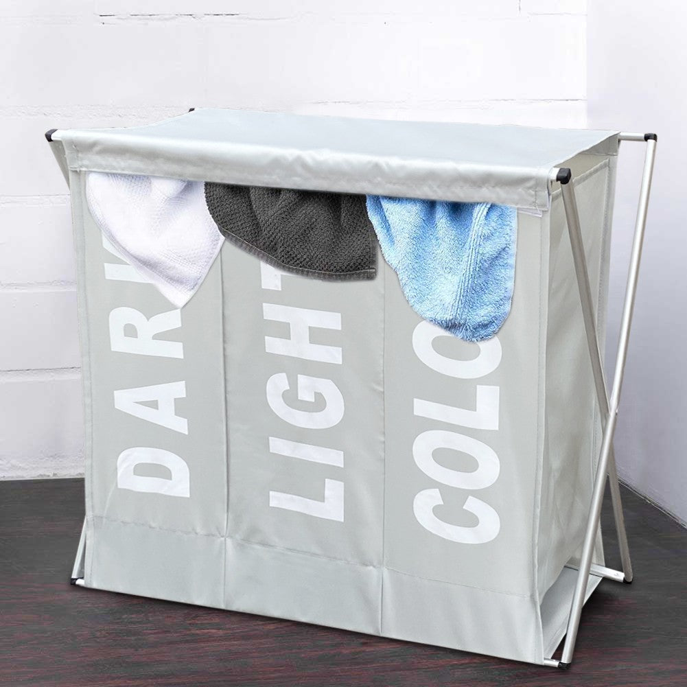 Cesto Portabiancheria 63x61x32 cm 3 Scomparti in Alluminio Grigio Chiaro