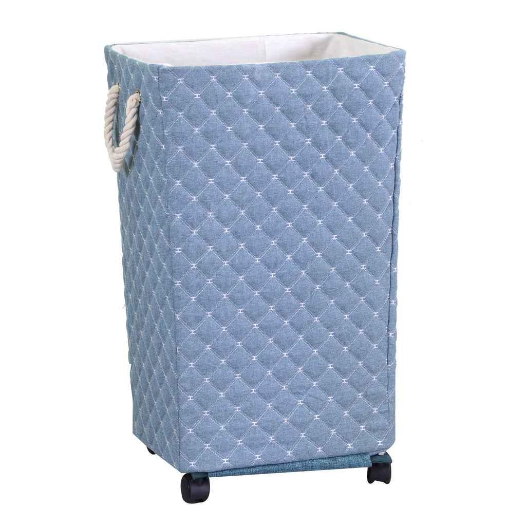 Cesto Portabiancheria in tessuto azzurro rettangolare con rotelle cm 40x30xh70