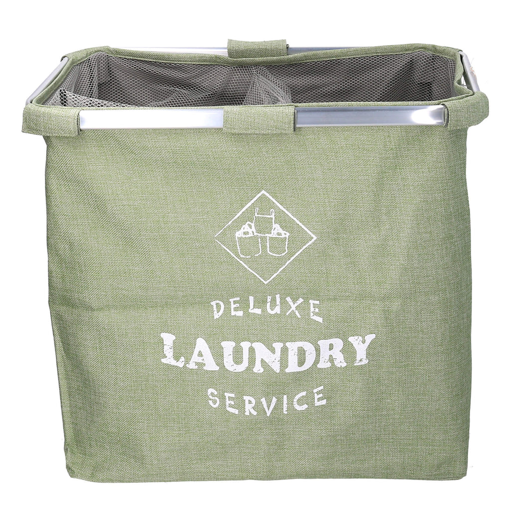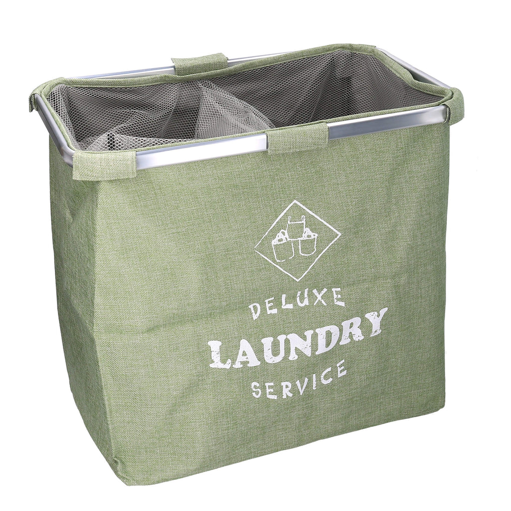 Cesto Portabiancheria in tessuto sacco verde doppio pieghevole cm 54x34.5xh50.5