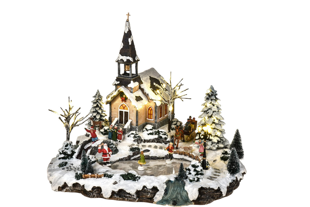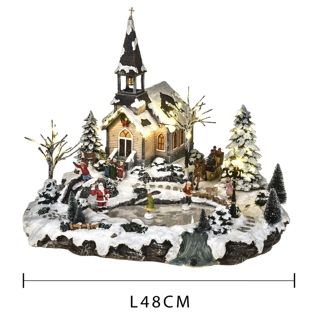 Chiesetta con Laghetto Movimento Luci e Musica 48 cm in Resina
