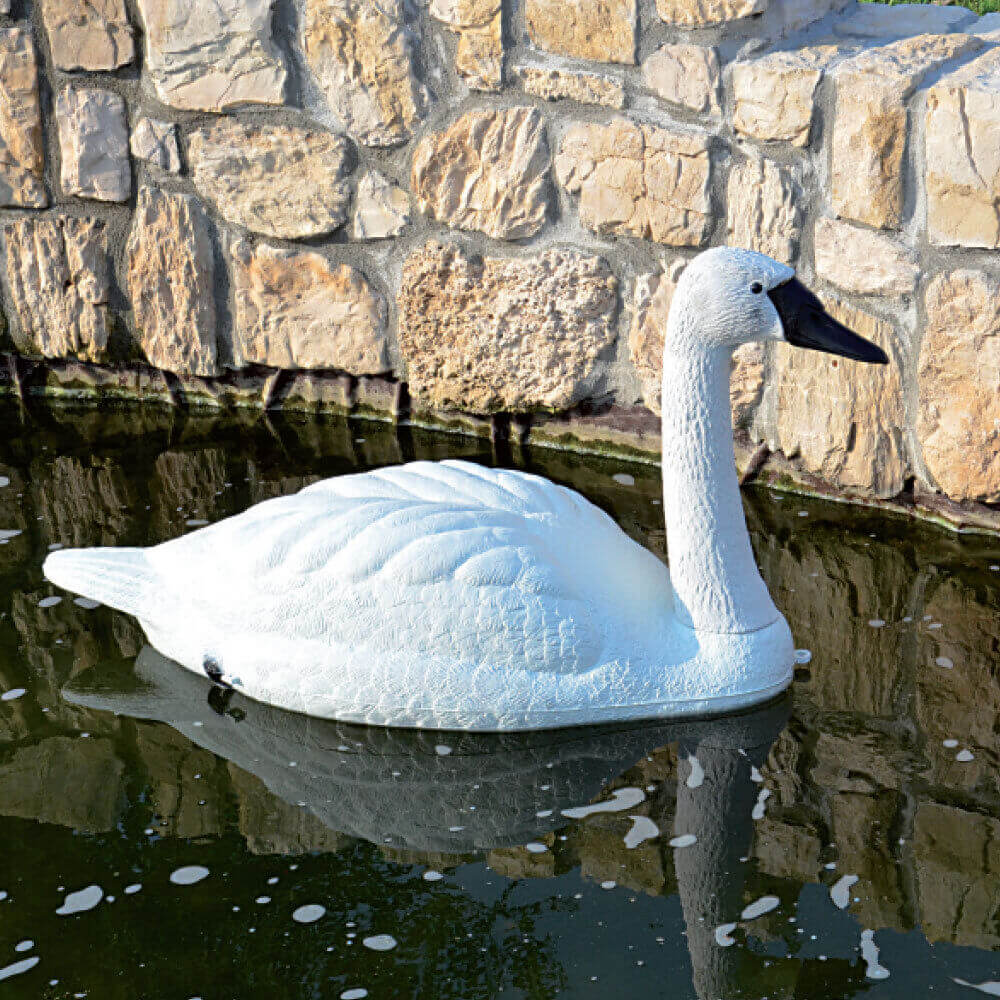 Bellissima riproduzione galleggiante del classico Cigno per laghetti da giardino, riproduzione molto realistica e verosimile realizzato in materiale resistente ai raggi UV ed agli agenti atmosferici. Ottimo come scaccia aironi ed uccelli predatori per la protezione dei pesciolini del laghetto!