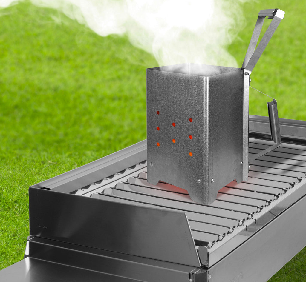 In circa 20-30 minuti, il carbone è bianco e perfettamente acceso e basta riversarlo nel barbecue o nella canalina cuoci-spiedini. Attenzione però, per prenderlo è importante utilizzare dei guanti ignifughi, per evitare di bruciarsi.