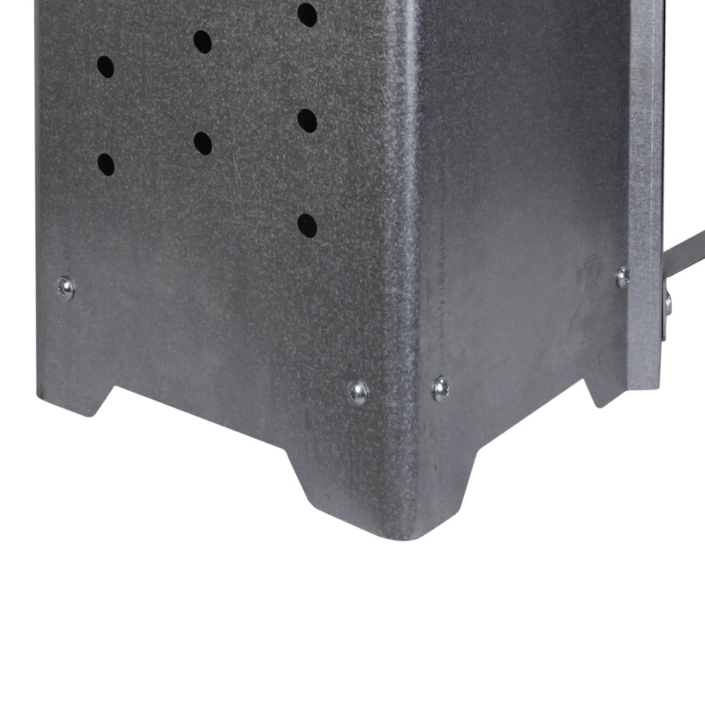 Le pareti forate favoriscono un passaggio costante di aria che alimenta il caminetto fino alla completa accensione della brace . Grazie alle sue dimensioni (30x18x18) ha una capienza elevata che permette l'accensione di tutta la brace necessaria alla cottura delle tue pietanze durante il barbecue. Nella parte inferiore, ha 4 comodi piedi che permettono una ventilazione costante del fuoco durante laccensione della brace.