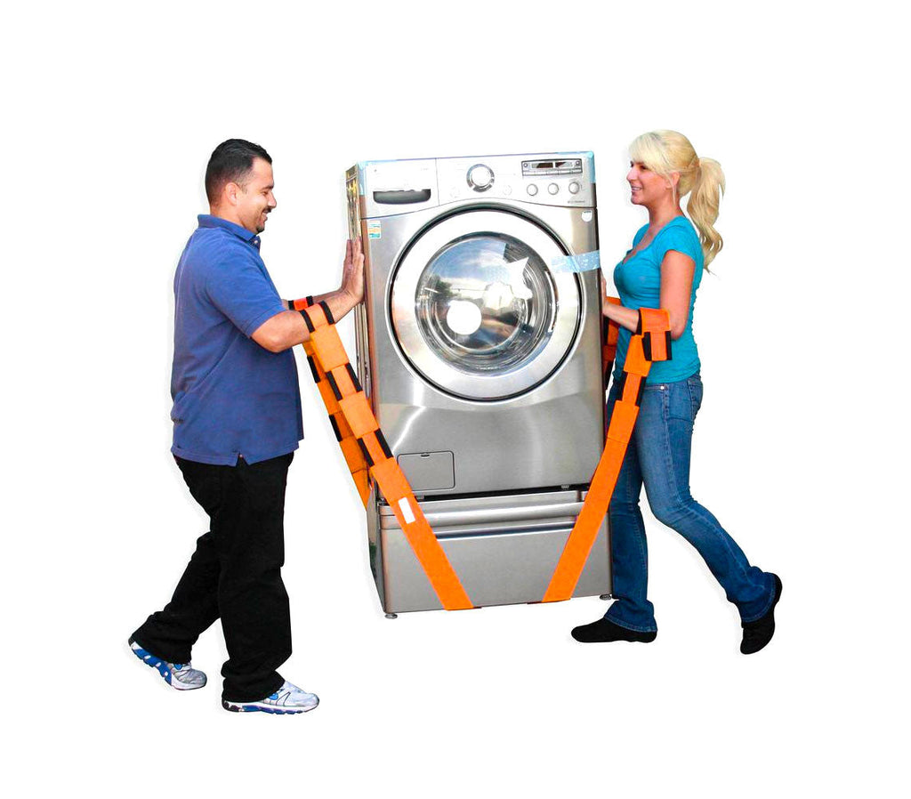 Questo speciale Kit di cinghie permette di sollevare oggetti pesanti senza sforzo. Grazie al suo sistema di scarico del peso, il kit permette di distribuire in modo uniforme il peso di oggetti molto pesanti come lavatrici, mobili, divani e quant'altro.