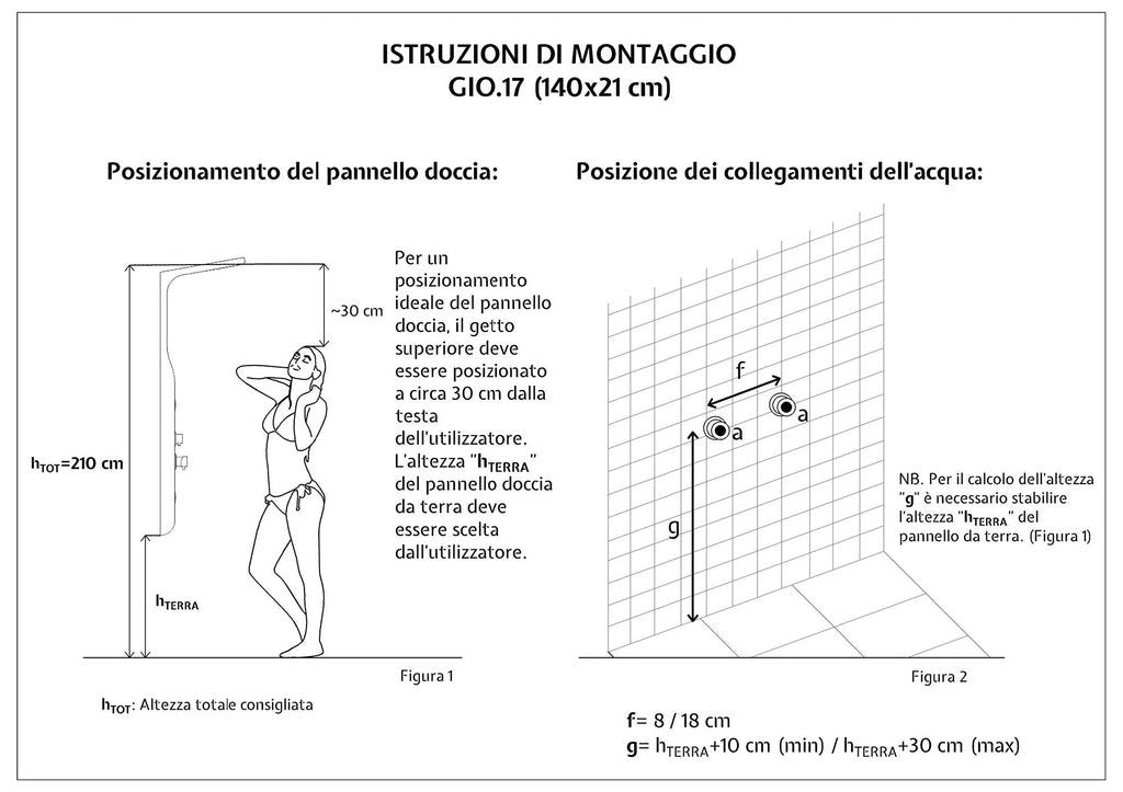 - Allacci impianto H ~80-110 cm L 8-17 cm
