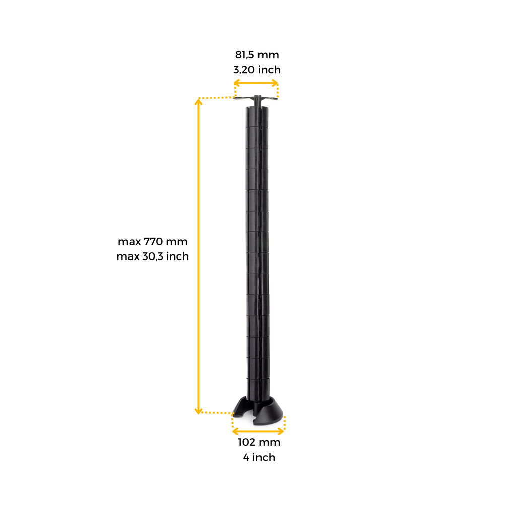 La colonna di gestione dei cavi Hexa è progettata per mantenere i cavi organizzati sotto il tavolo dell'ufficio ed evitare che si aggroviglino.