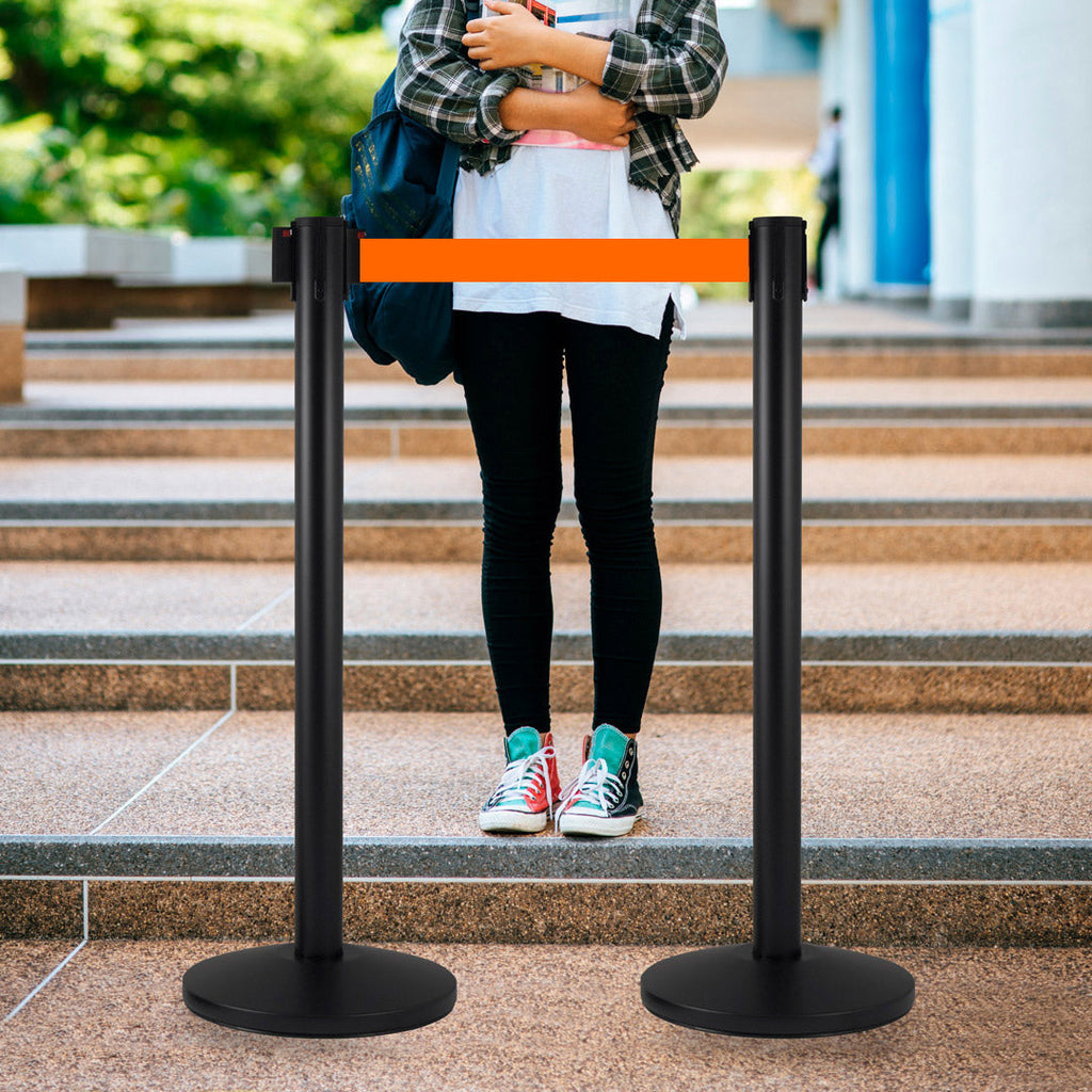 2 Colonnine Tendinastro 3 metri in Metallo Nero Opaco Ø36x101 cm Nastro Arancione
