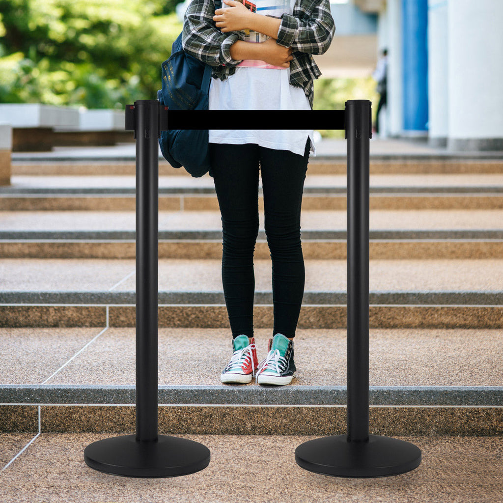 2 Colonnine Tendinastro 3 metri in Metallo Nero Opaco Ø36x101 cm Nastro Nero