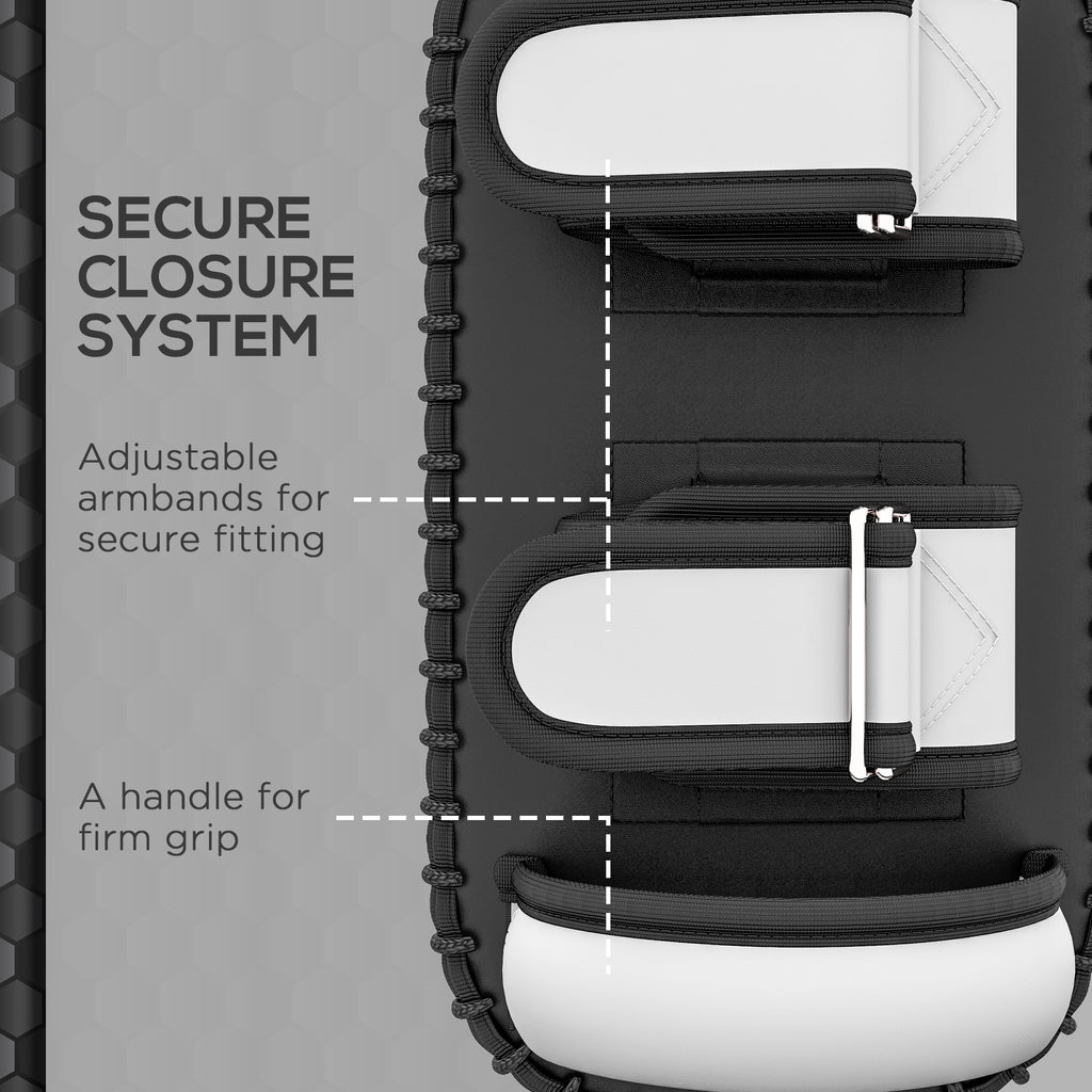 - CHIUSURA SICURA: Grazie all'impugnatura e alle 2 cinghie con gancio e anello, è possibile impugnare il pao da muay thai e legarlo al braccio per ottenere un maggiore controllo da diverse angolazioni