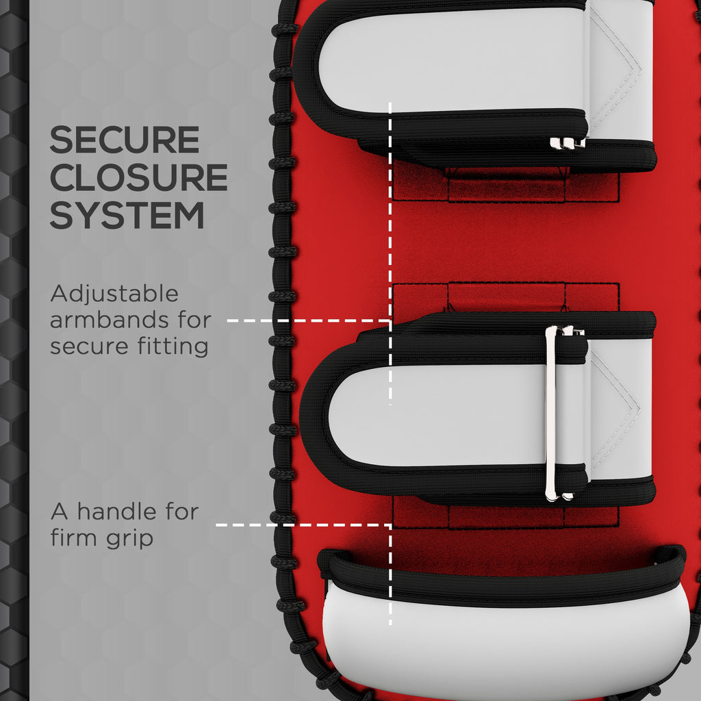 - CHIUSURA SICURA: Grazie all'impugnatura e alle 2 cinghie con gancio e anello, è possibile impugnare il pao da muay thai e legarlo al braccio per ottenere un maggiore controllo da diverse angolazioni