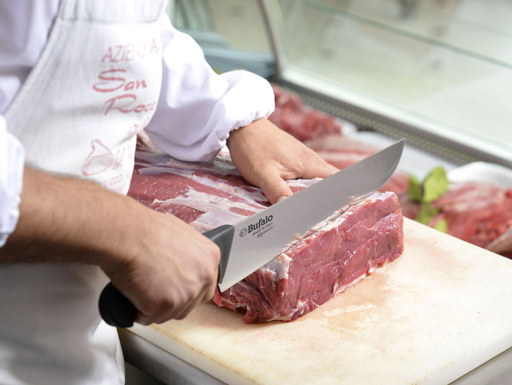 I coltelli per macelleria Bufalo sono prodotti in Italia nelle coltellerie di Maniago, con storica lavorazione artigianale e acciaio di eccelsa qualità.