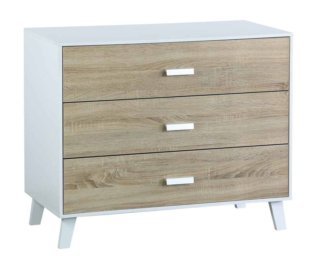 Comò 3 Cassetti 90x40x75 cm in Pannello Truciolare Bianco/Sonoma