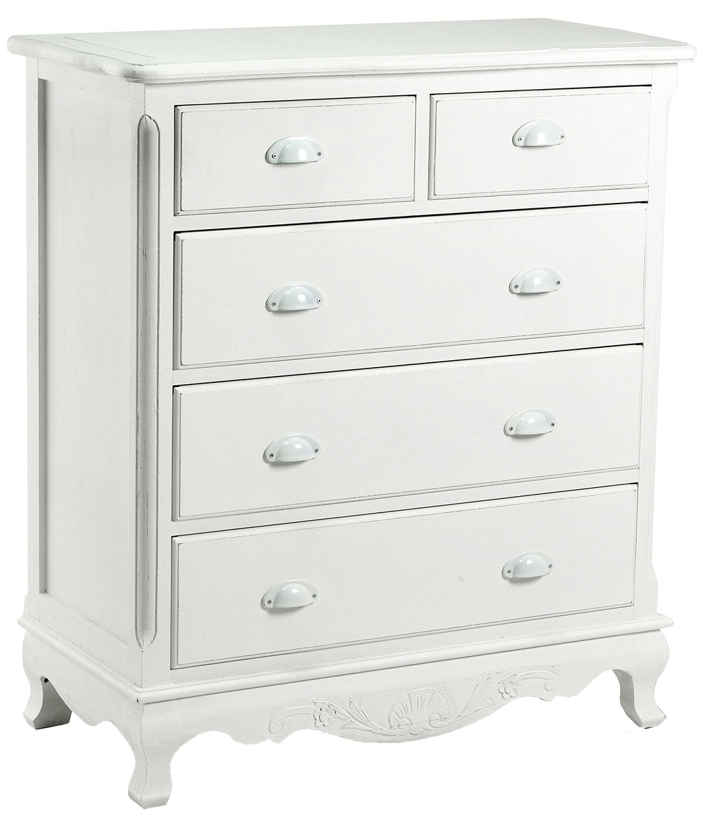 Comò 5 Cassetti in Legno Basilea Bianco Anticato