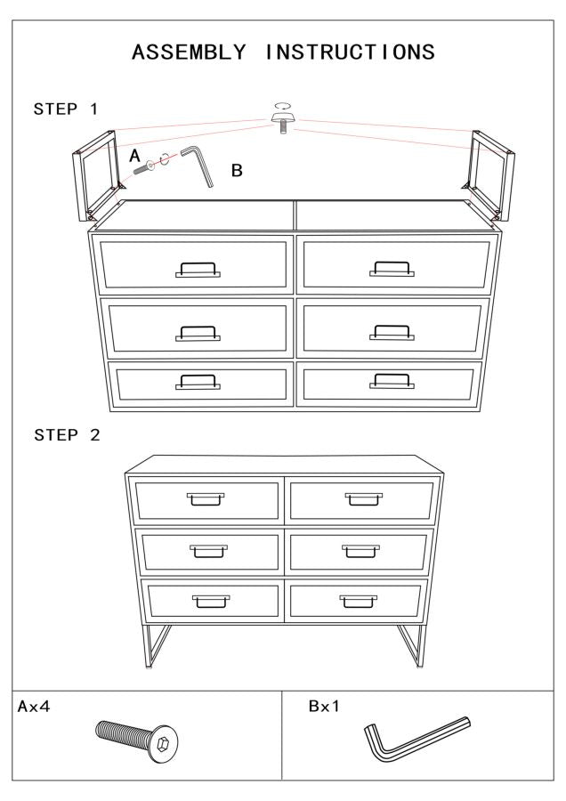 Comò 6 Cassetti 120x40x80 cm in Metallo e Legno
