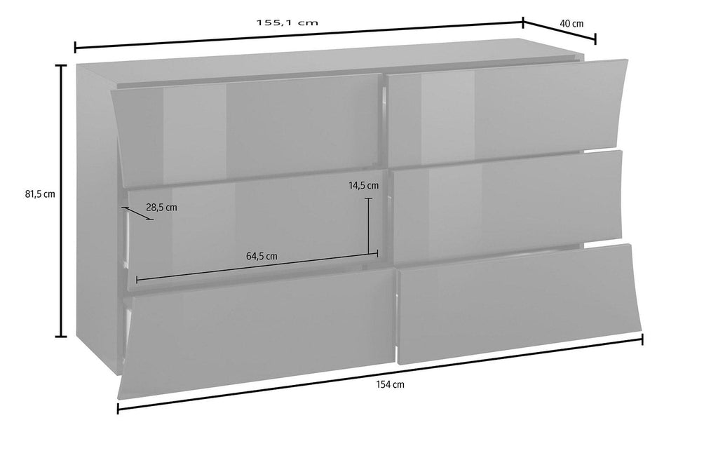 Comò 6 Cassetti 155,1x40x81,5 cm Arco Bianco Lucido