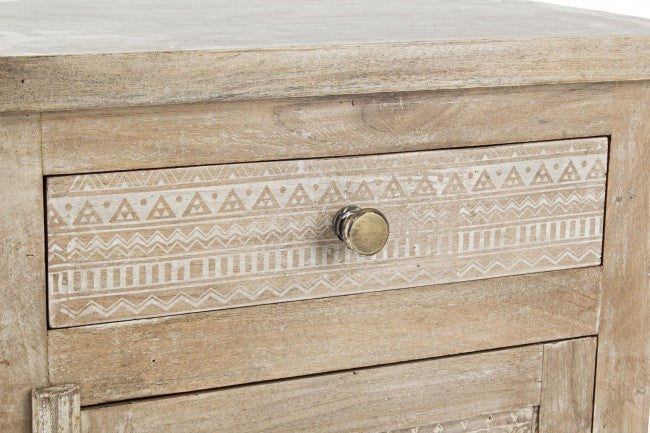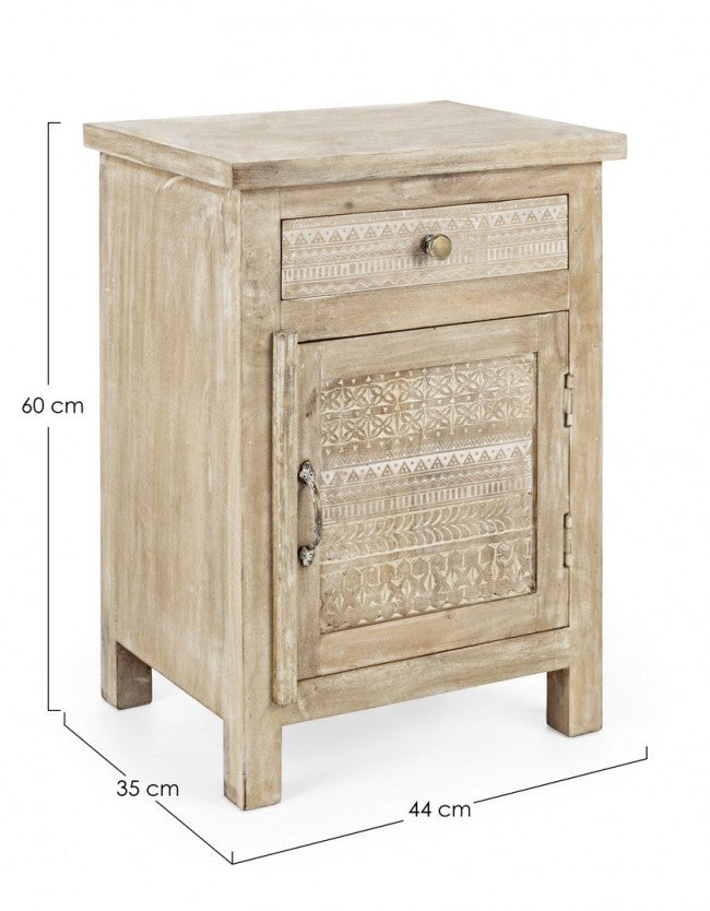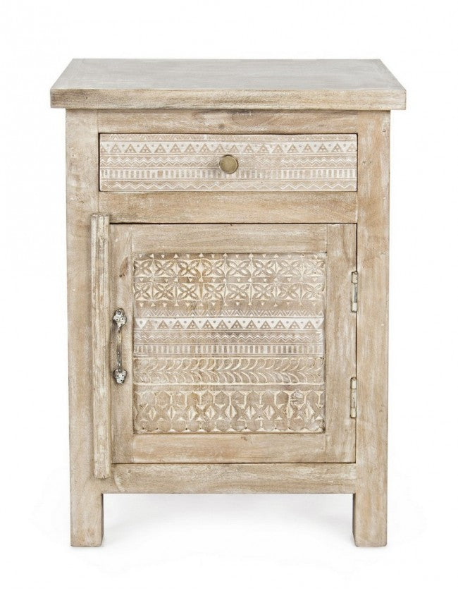 Comodino 1 Anta 1 Cassetto con Vetrora in Legno