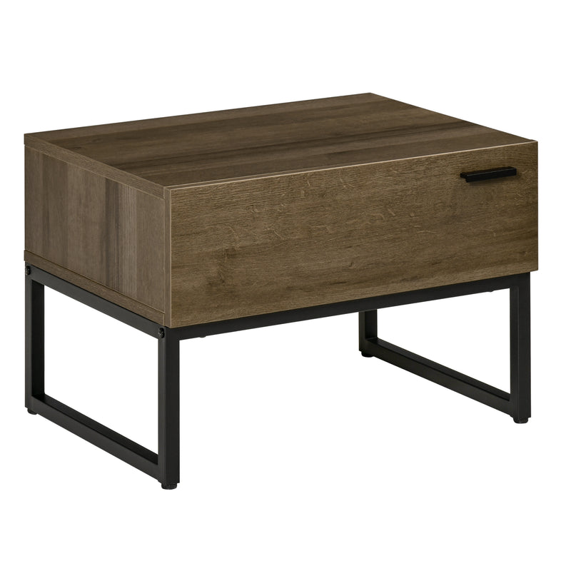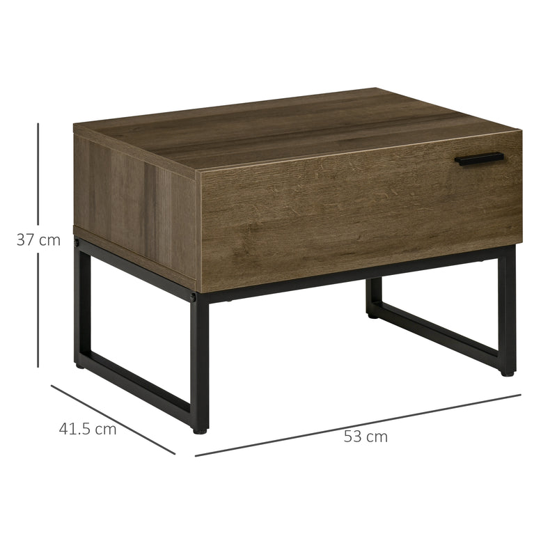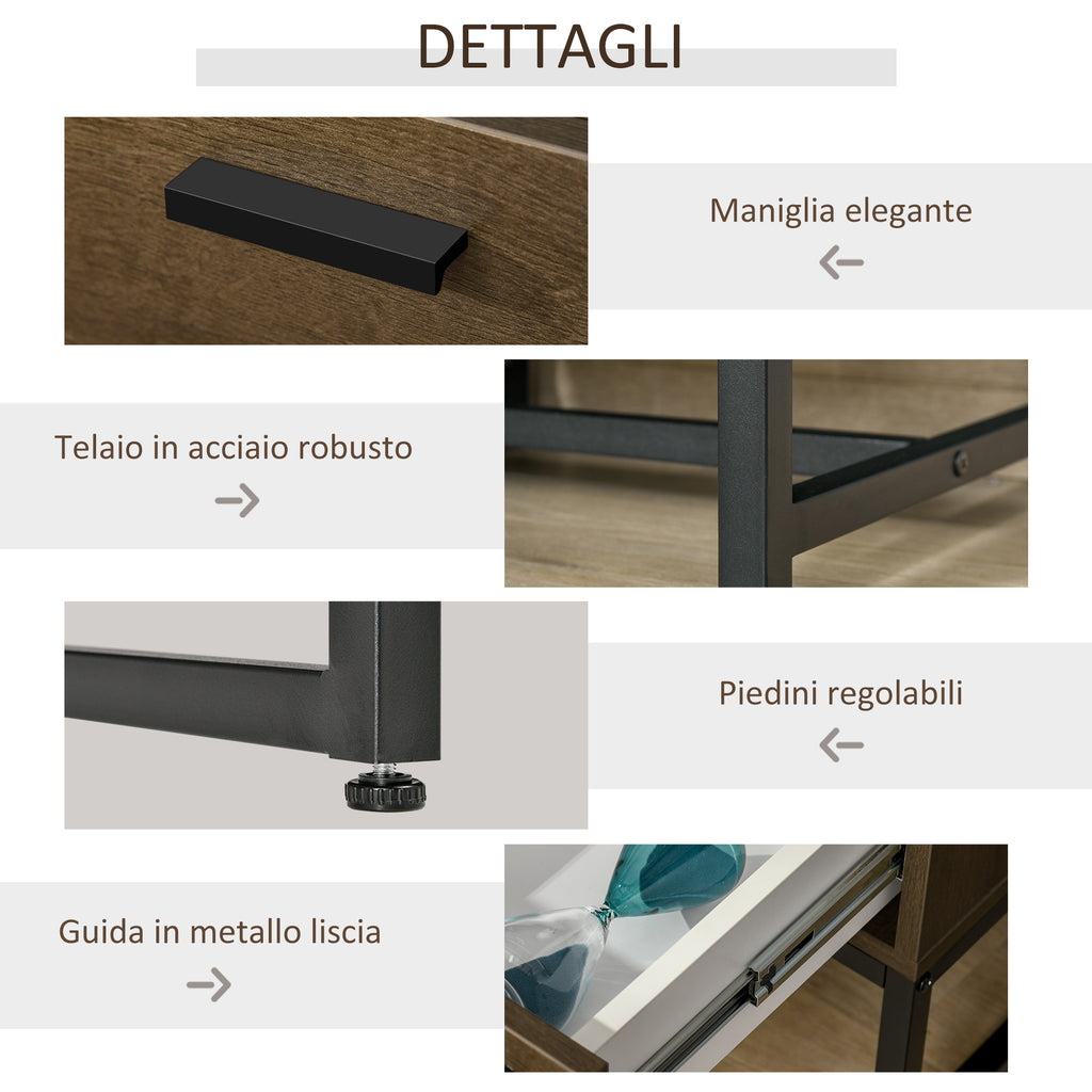 Comodino 1 Cassetto 53x41,5x37 cm in Legno e Acciaio Marrone