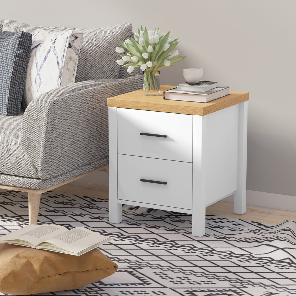 Comodino 2 Cassetti 40x39x48 cm in MDF Bianco