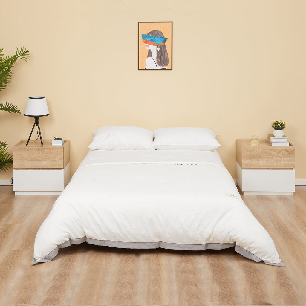 Comodino 2 Cassetti 50x40x47,5 cm Design Moderno Nature Wood e Bianco