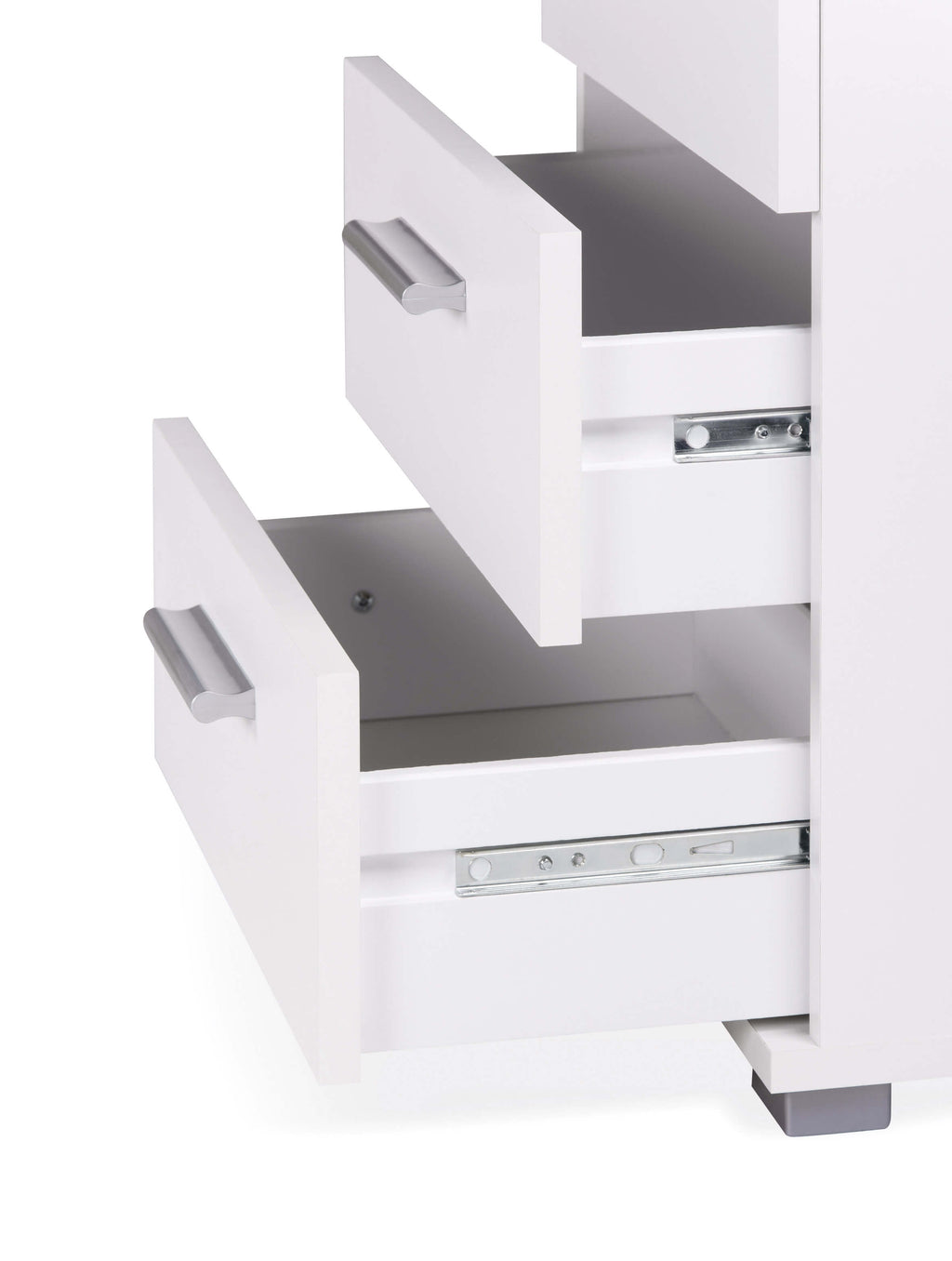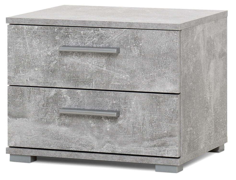 Comodino in pannello truciolare rivestito in melaminico color cemento. Prodotta in Germania, ha le guide cassetti in metallo. Utilizzabile anche come comodino, il suo design essenziale la posiziona in qualsiasi ambiente della casa o dell'ufficio.