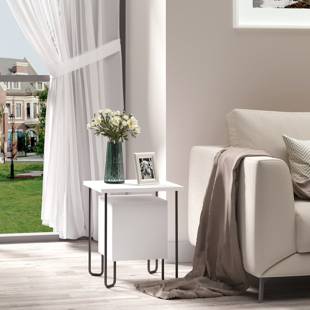 - MATERIALI DI QUALITÀ: Con le sue lunghe gambe metalliche a forma di U, questo mini comodino è stabile e duraturo. Il rivestimento in melammina è facile da pulire.