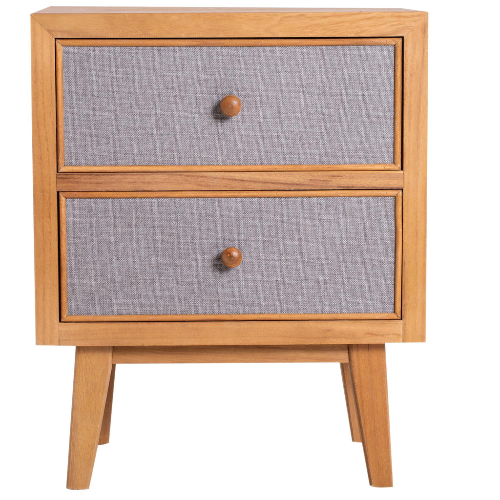 Comodino in Legno 2 Cassetti Legno e Grigio 44x30x55 cm