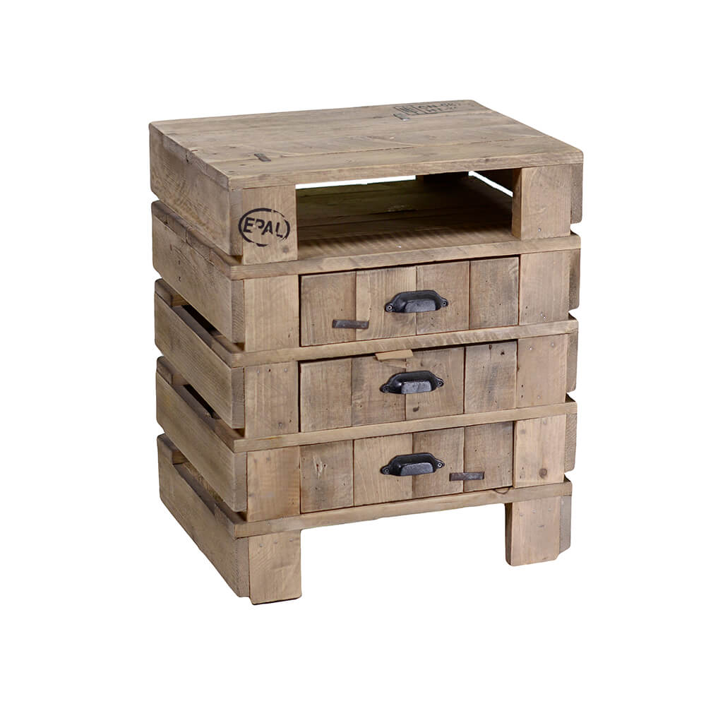 Mobile Comodino 1 Vano e 3 Cassetti in Pallet è un il giusto elemto di arredo per la vostra casa ecologico e duraturo nel tempo.E adatto a tutti i tipi di arredo e sarà un complemento darredo sempre al passo con i tempi.