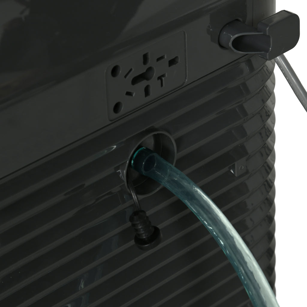 - DIMENSIONI: Dimensioni complessive: 44.3L x 34P x 81.5A cm. Il condizionatore è dotato di un filtro rimovibile e lavabile, mentre la confezione include dei tubi per il drenaggio dell'acqua e avvisa quando l'acqua è piena. È inoltre presente un kit per l'utilizzo con finestre scorrevoli