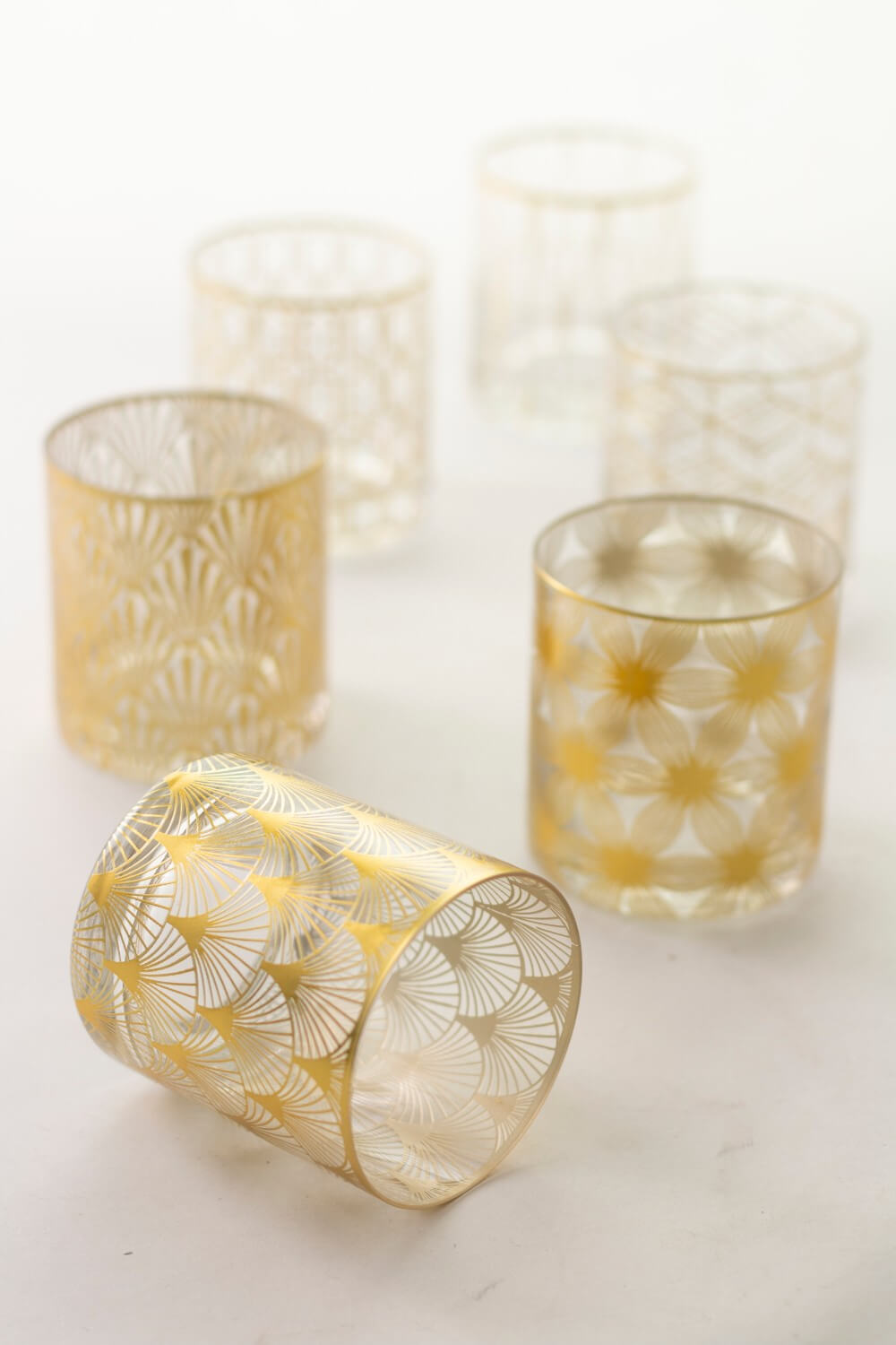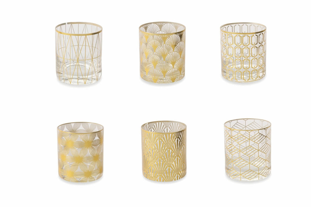 Confezione 6 Bicchieri Acqua in Vetro 300ml Villa d'Este Home Tivoli Opera Oro