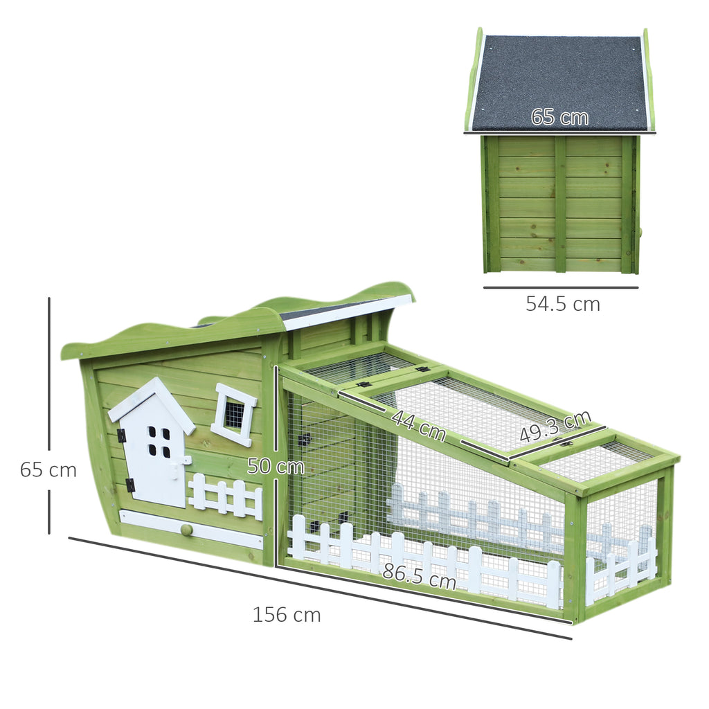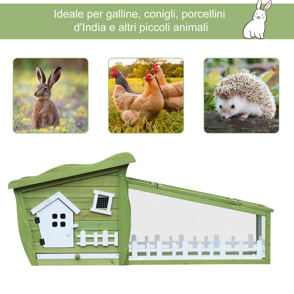 Conigliera con Corsa Vassoio Estraibile e Tetto Impermeabile in Legno Verde Bianco 155x54.5x65 cm